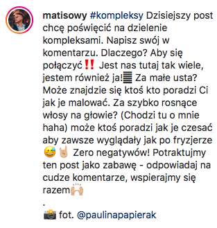 Twoi odbiorcy w mig wyczują sztuczność w opisach. Daruj więc sobie wyświechtane bon-tony rodem z książek Paulo Coehlo w stylu “Nie byłabym sobą gdybym była inna”. Lepiej pomyślcie, że piszecie do swojej dobrej koleżanki czy kolegi. Bo w końcu o to chodzi w budowaniu swojej społeczności na Instagramie - o skracanie dystansu i nawiązywanie więzi.