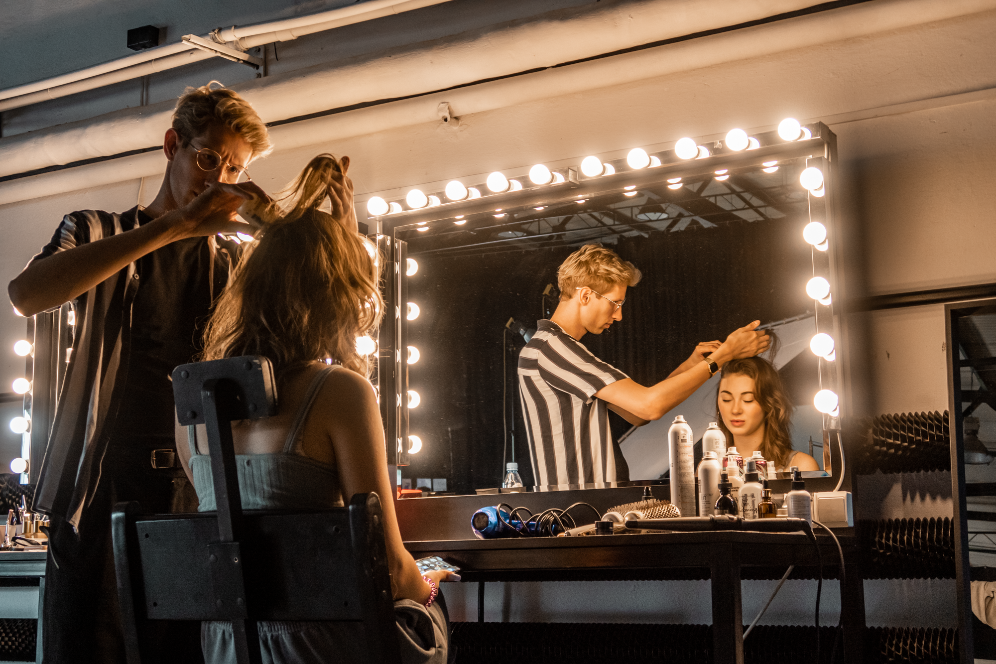 Po zrobieniu zdjęć indywidualnych, w końcu przyszedł czas na pierwsze zdjęcia dwójkami - Leny ze Smavem. To też czas, kiedy do studia przyszła kolejna dwójka influencerów - Amelia i Tymek. W przypadku tej dwójki sprawa czasu spędzonego na przygotowaniach miała się trochę inaczej. Wszystko przez to, że Tymek, poza standardowym ułożeniem włosów przez fryzjera miał je jeszcze... podcinane. W sumie, trochę zazdrościmy - 2w1.