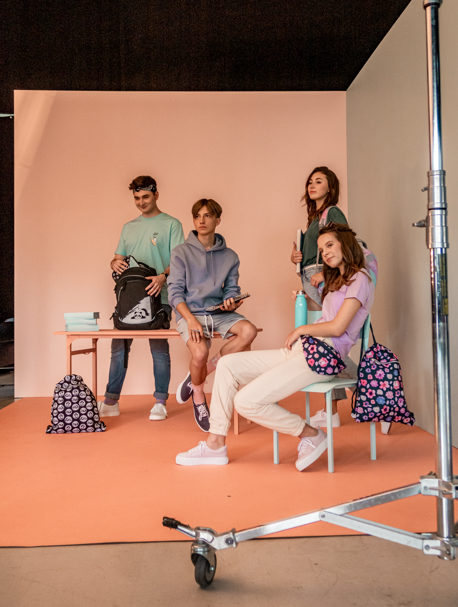 Po przerwie obiadowej (był catering z ciepłymi daniami - nie dalibyśmy zagłodzić naszych twórców!) i skończonych zdjęciach całej czwórki Lena i Smav mogli wrócić do domu. Na planie została Amelia i Tymek. Analogicznie, najpierw były robione zdjęcia wspólne dwójki, a później indywidualne ujęcia.