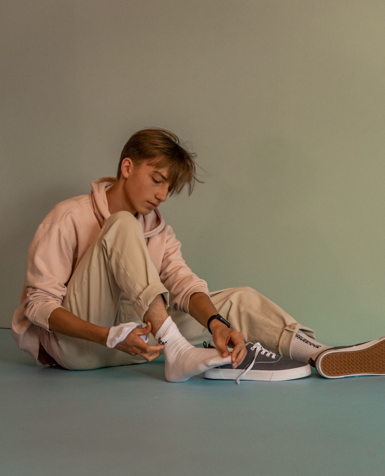 Czasami, w trakcie zdjęć, nasi modele i modelki zmieniali buty, skarpetki czy inne elementy ubioru. Mimo dobrze rozrysowanego planu, zawsze może się okazać, że po zrobieniu zdjęć coś nie gra, jakiś kolor, faktura, kształt. Na szczęście nikt nie marudził, a wszystko szło bardzo sprawnie.