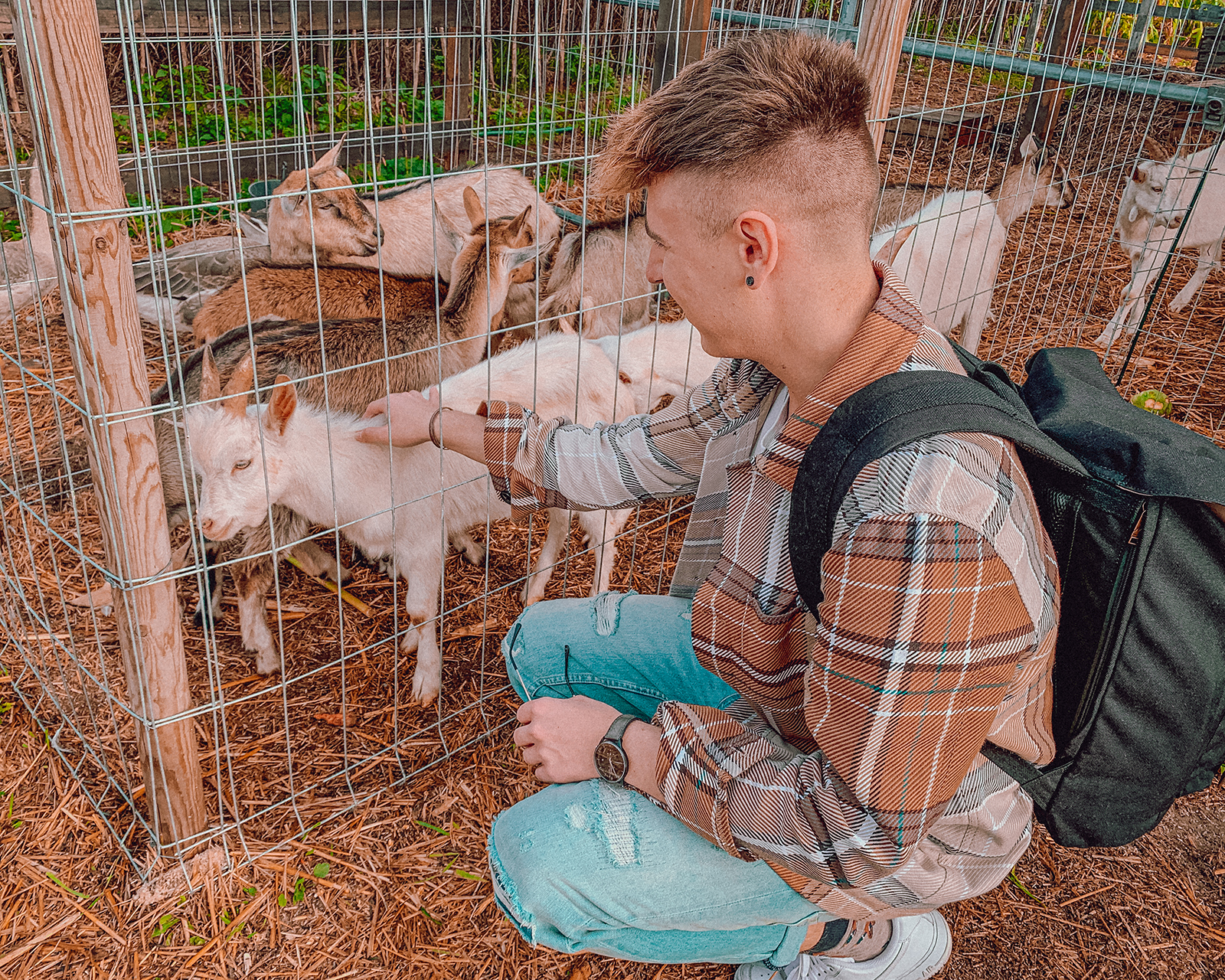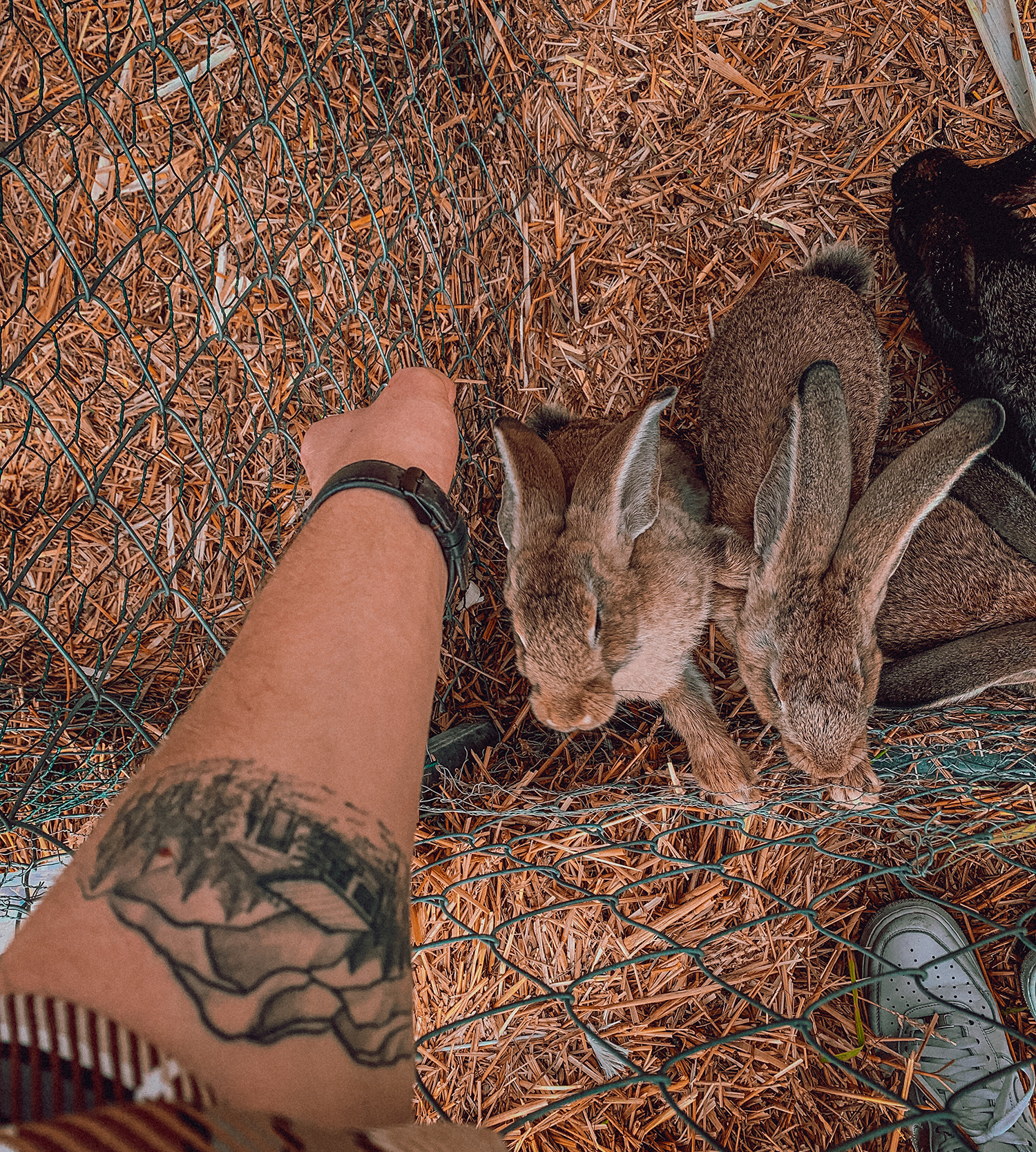 No właśnie - poza dyniami i słomą, na miejscu znajdziemy też mini zoo z królikami, małymi kózkami, gęsiami i alpakami. Do tego są też huśtawki oraz trampoliny. Teoretycznie atrakcje przewidziane są głównie dla najmłodszych, ale jako osoby pielęgnujące w sobie wewnętrzne dziecko przechodząc obok wybiegów z uroczymi zwierzakami nie mogliśmy odmówić sobie zatrzymania się na chwilę przy nich.