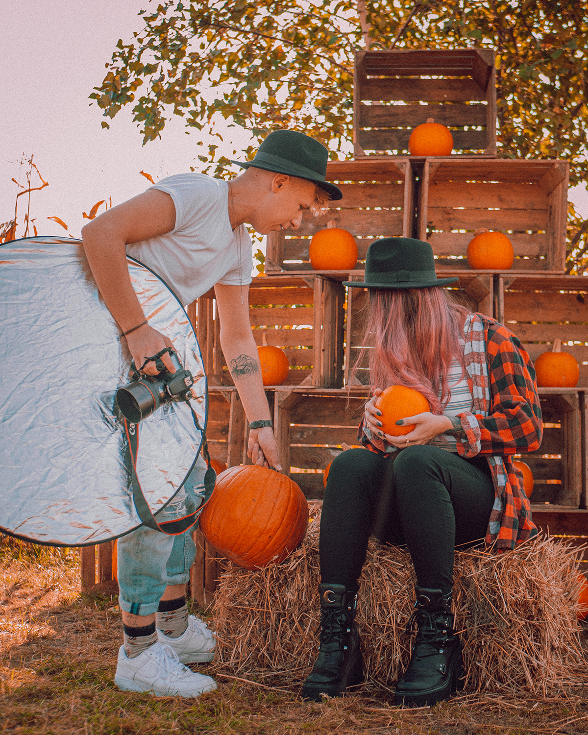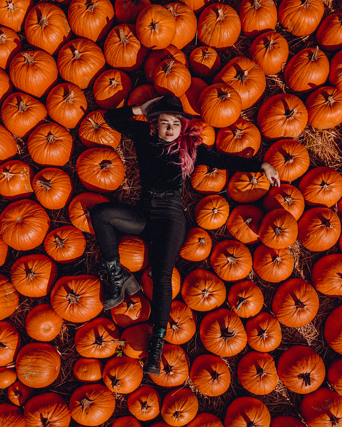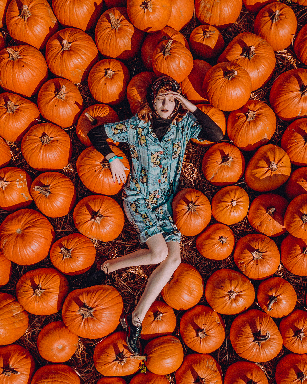 Gadżetem, który warto zabrać w takie miejsce jest na pewno dron (oczywiście o ile macie taką możliwość). Jeżeli uda wam sie trafić na stosunkowo małą ilość ludzi (jak nam), to dyniowe farmy są fantastycznym miejscem do zdjęć i filmów z lotu ptaka.