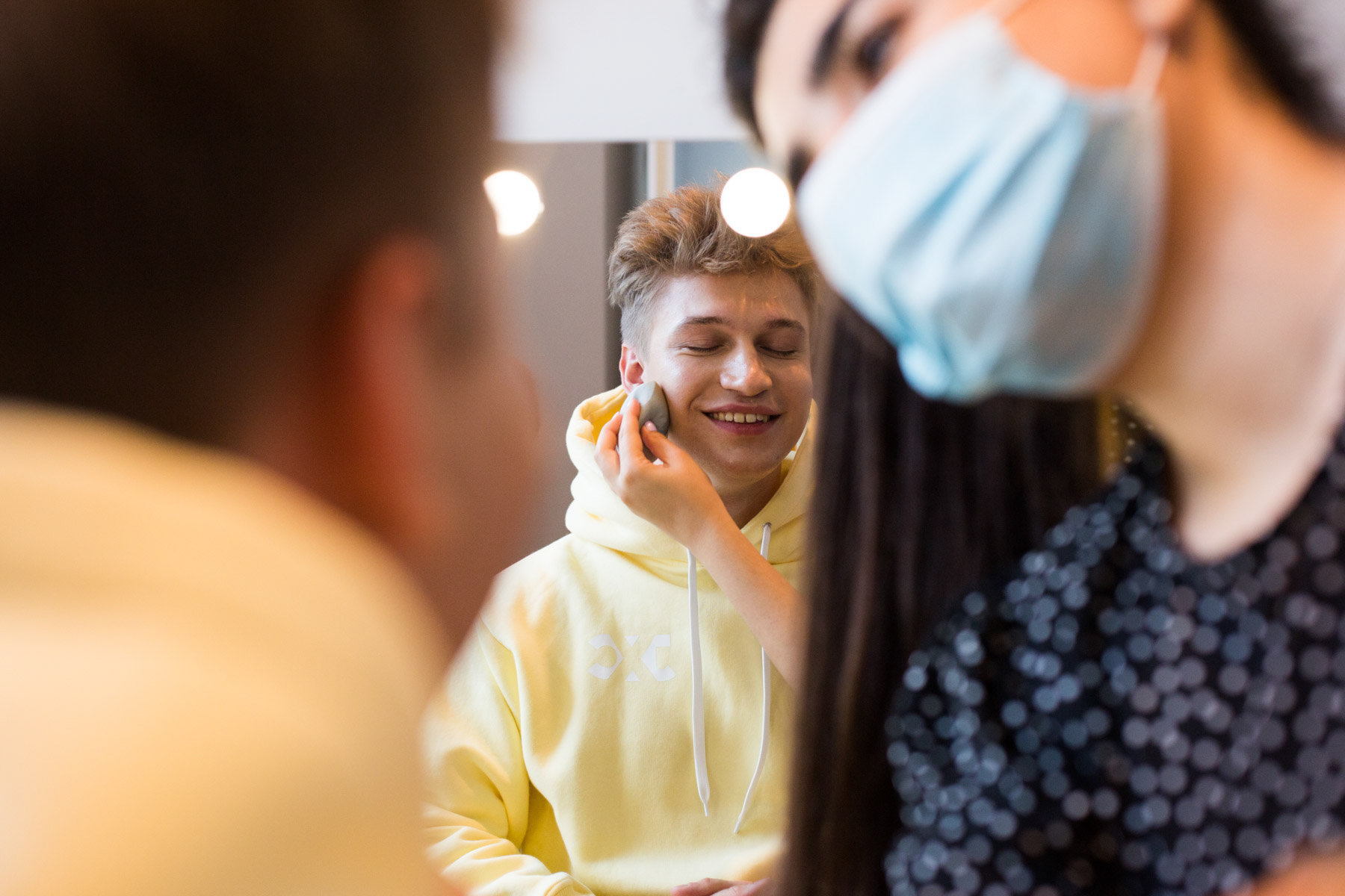 W tym przypadku, z racji, że był to program dla dzieci, twórcy byli pomalowani na tak zwany “make-up no make-up” - czyli wygładzamy cerę, zakrywamy delikatnie niedoskonałości, ale nie ma mowy o rozświetlaczu czy kolorowych cieniach.