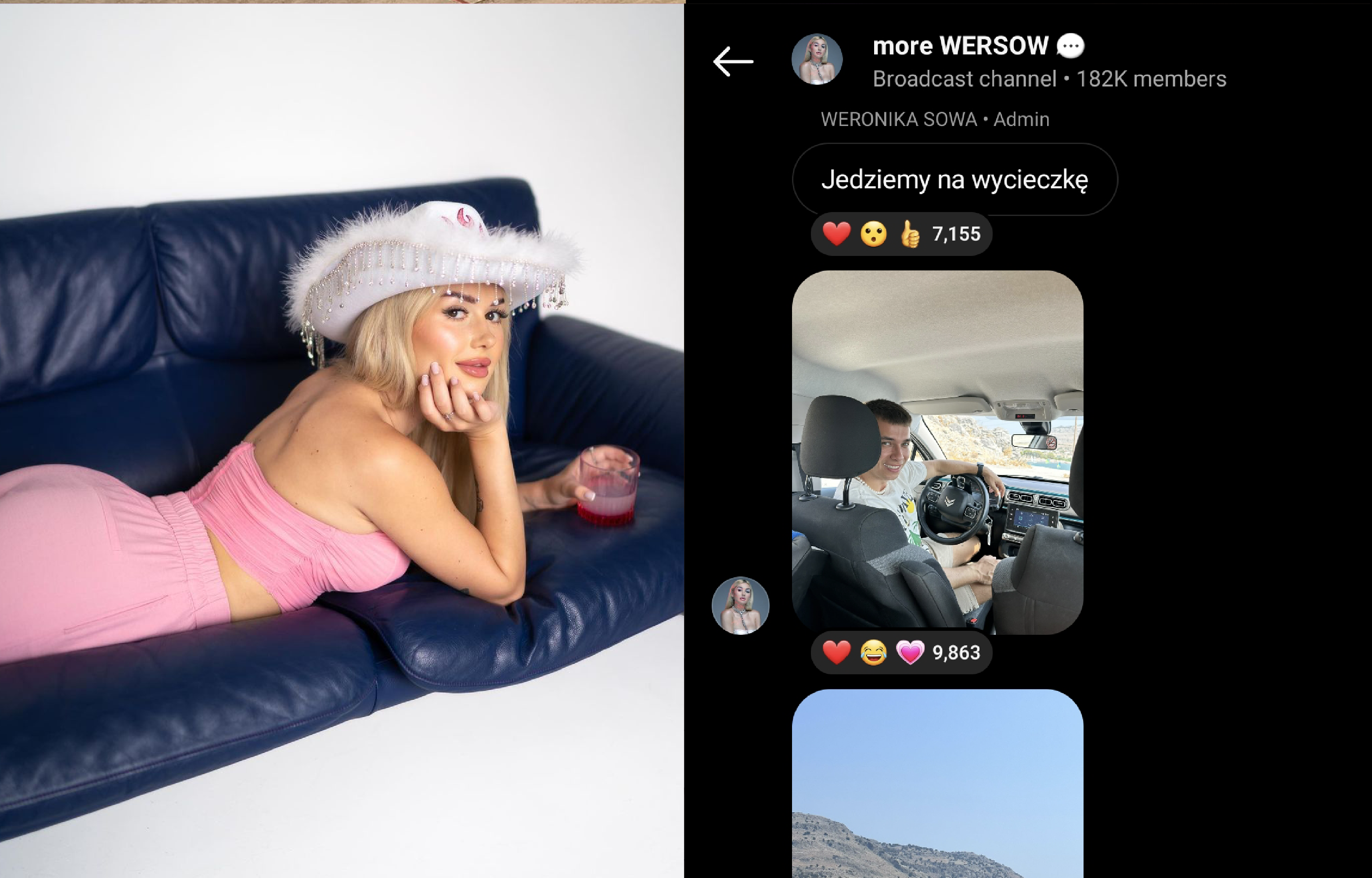 Znana influencerka Wersow, która niedawno została mamą, także zdecydowała się na otwarcie swojego kanału nadawczego o nazwie More Wersow. Choć pewnie sporo osób spodziewało się, że będzie tam królował content dla mam, tak się jednak nie stało i Weronika nadal pisze o tym, co lubi najbardziej, czyli głównie o modzie i makijażu. Obecnie More Wersow obserwuje już ponad 160 tysięcy użytkowników, co sprawia, że jest to jeden z najpopularniejszych kanałów w Polsce, a na dodatek ta liczba stale się zwiększa. Na kanale możemy podglądać przede wszystkim jej codzienność. Weronika pełna jest pozytywnej energii, którą stara się zarazić każdego swojego obserwatora. Ostatnio na kanale pojawiły się kulisy z obchodzenia jej urodzin oraz rocznicy związku z Karolem. Od czasu do czasu pojawiają się także przeurocze fotki ich małej córeczki.