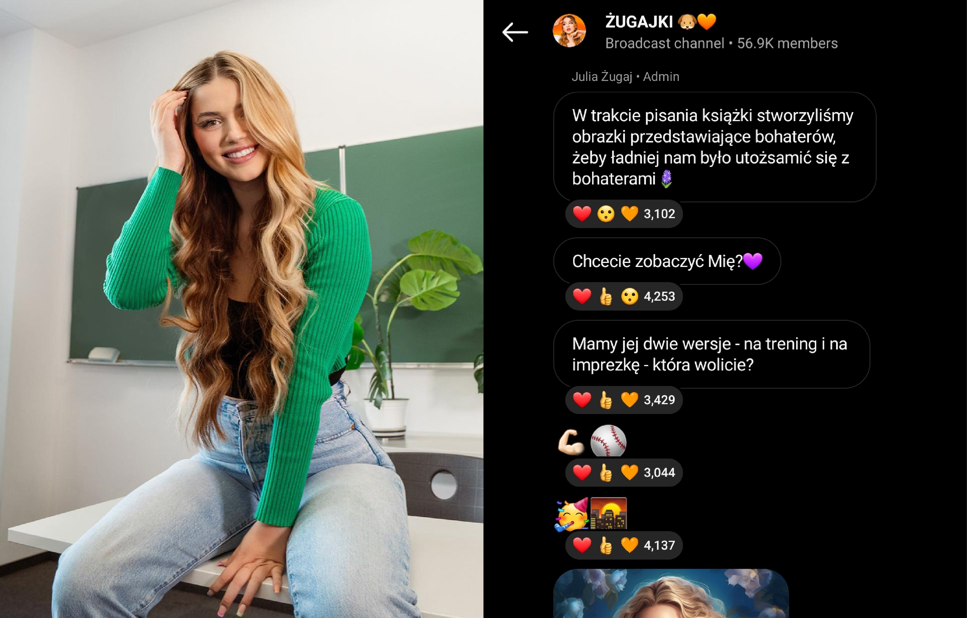 Julia Żugaj to jedna z tych influencerek, która doskonale wie, jak wykorzystać swoją popularność. W związku z tym nie tylko prowadzi konto na Instagramie i TikToku, ale i koncertuje. Twórczyni stara się cały czas rozwijać i próbować nowych rzeczy i właśnie tym wszystkim dzieli się ze swoimi fanami na kanale nadawczym Żugajki. Znajdziecie tam masę zdjęć jej ukochanych czworonogów, a także informacje związane z zapowiadaną trasą koncertową. Dodatkowo to właśnie obserwatorzy Żugajek jako pierwsi wiedzą o nadchodzących nowościach i współpracach.