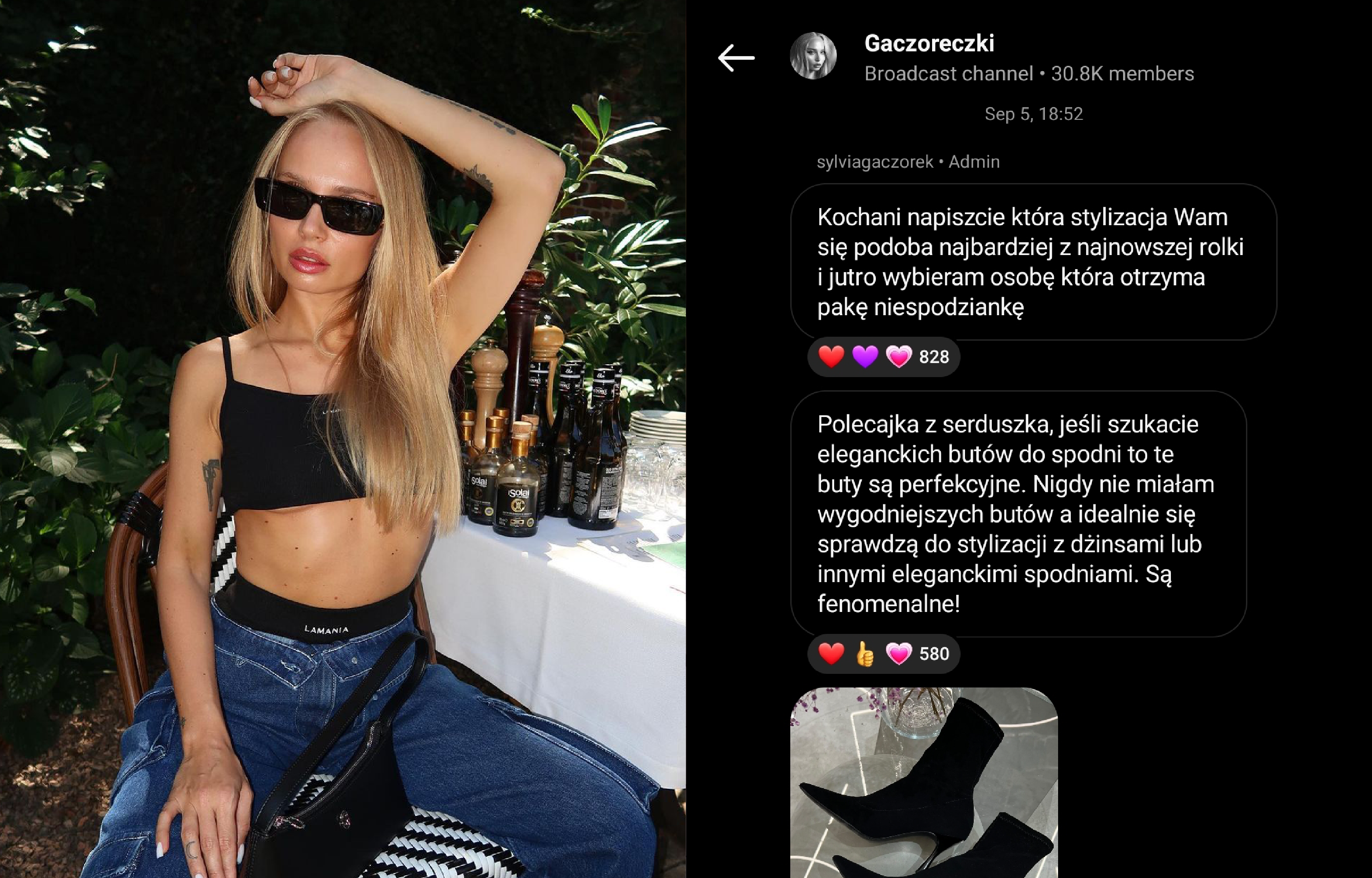 Najsłynniejsza fryzjerka na polskim Instagramie, czyli Sylwia Gaczorek nazwała swój kanał nadawczy właśnie Gaczoreczki, co stanowi nawiązanie do jej nazwiska. Obecnie grupę influencerki obserwuje już ponad 30 tysięcy osób. Sylwia tak jak i wielu innych twórców, postanowiła organizować rozdania, w których nagradza niektórych swoich fanów za ponadprzeciętną aktywność. Oczywiście w pierwszej kolejności takie informacje pojawiają się właśnie na kanale nadawczym. Oprócz tego dziewczyna często opisuje tam swoje typowe dni, zamieszcza przypomnienia o nowych filmach oraz uśmiechnięte selfie, które chyba każdego od razu wprowadzą w dobry nastrój.